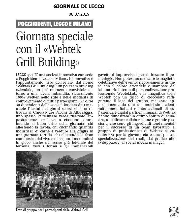 Ritrovo al chiosco dei pavoni di Albosaggia per i dipendenti di Webtek, società fondata da Emanuele Piasini, in occasione del tanto atteso evento estivo che è insieme un'iniziativa di team building e un momento conviviale.